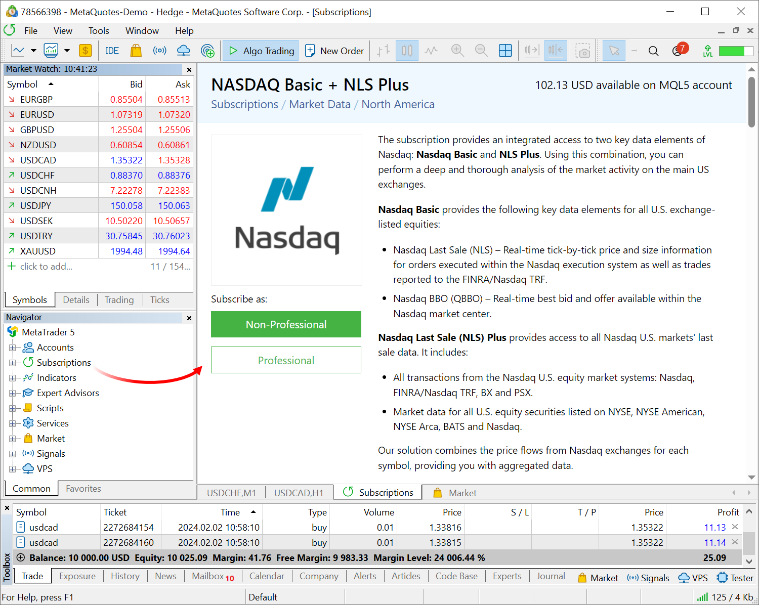 2. 推出纳斯达克市场数据订阅的准备工作正在进行中。通过该平台,交易者将能够访问来自最大交易所之一的数百种交易品种的实时报价和深入价格历史记录。任何在MetaQuotes-Demo服务器上拥有模拟账户和拥有MQL5.community账户的用户都可以订阅。