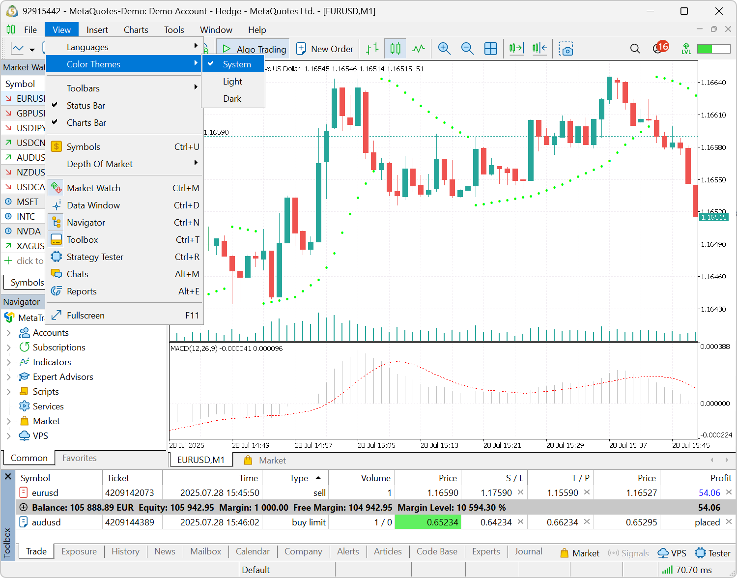 1. 增加了根据 Windows 设置自动应用浅色或深色主题的功能。要启用此功能,请选择新选项:查看 \ 颜色主题 \ 系统。每次平台启动时,它都会检测到您的系统主题并相应地进行调整。